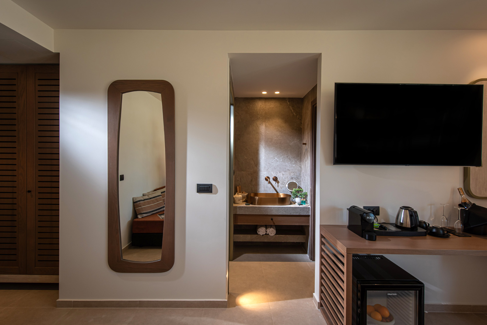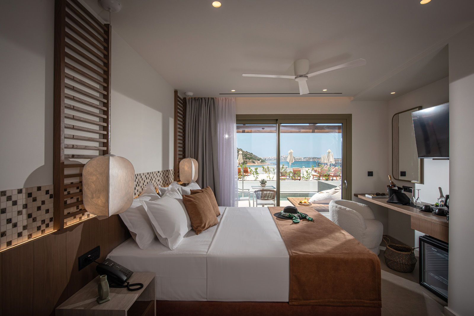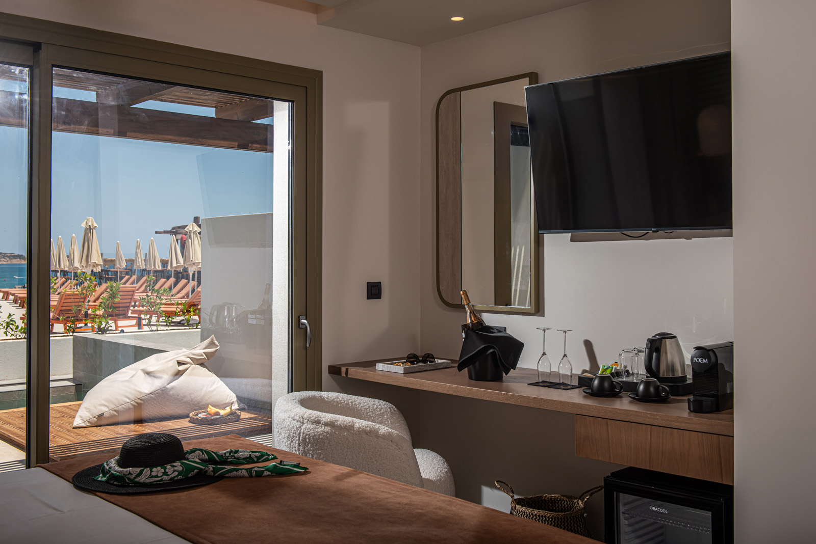 A private 28 sq.m. suite that blends style and comfort, featuring its own pool and views of the sea or the main pool.
